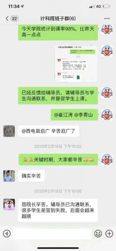 每日通知学院在线教学领导小组和辅导员老师到课率