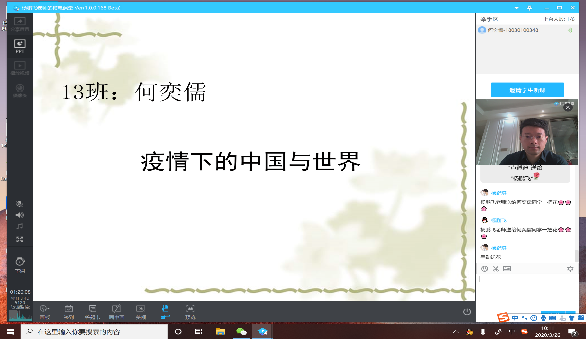1.课程安排上:杨鹏飞老师在第一节测试课中,并没有直接讲授课程内容,而是先抛出了一个课堂作业:谈谈新型冠状病毒期间的所思和所感。通过热点话题,吸引学生注意力。