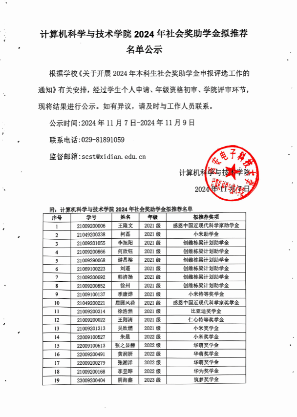 beat365官方网站2024年社会奖助学金拟推荐名单公示