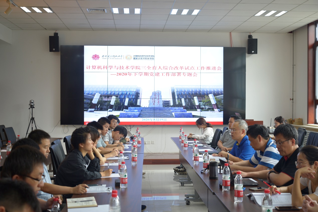 教职工党支部立足立德树人实际,从课程育人、科研育人、管理育人、心理育人、实践育人、文化育人、服务育人等方面汇报工作计划。其中,学校“双带头人”教师党支部工作室培育单位—网络工程系党支部的书记苗启广融入“三全育人”理念,从全体党员参与、帮扶困难学生、校企交流合作和“后疫情时代”育人工作等维度汇报了党支部工作计划。学校样板支部培育单位—软件工程系党支部的书记宋胜利汇报了“内强、外拓、中优”的党支部建设思路,从党建与业务深度融合、多维交叉协同等方面将“三全育人”理念融入党支部建设工作中。