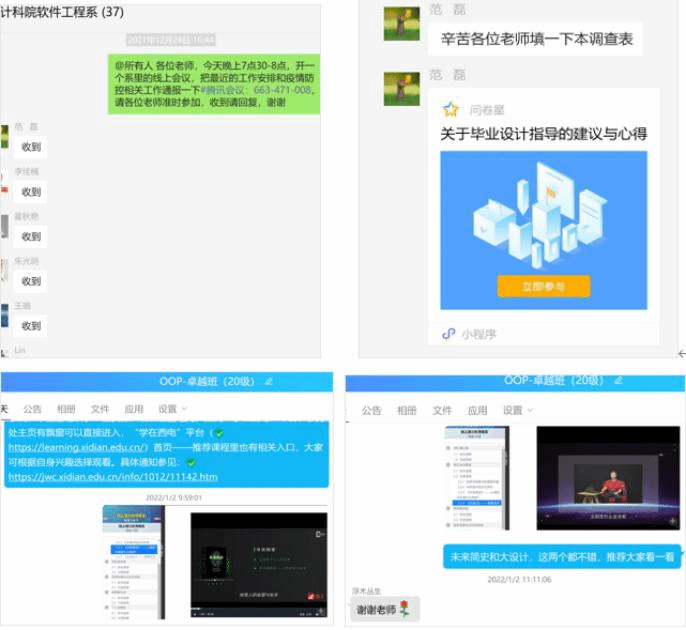 虽然突袭的疫情打乱了人们的脚步,防控形势依然严峻,但软件工程系每位教师都坚守岗位,以各种力所能及的方式为学校和学院的疫情防控工作贡献着力量。愿疫情早日结束,还西安长安,给学生们一个更胜往昔的校园!