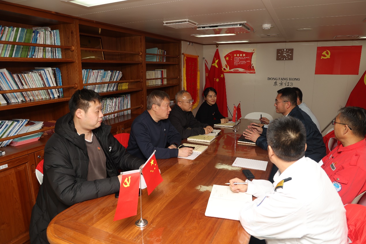 为进一步加强党组织交流,以党建引领双方多维度合作,在行进的“东方红3”科考船上,西电beat365官方网站党委书记李青山,青岛研究院副院长、产教融合本硕博师联合党支部书记向麟海与中国海洋大学船舶中心党总支书记、中国海洋大学船舶中心主任王毅,中国海洋大学研究生院副院长刘海波,东方红3船党支部书记王辉、船长于少杰等共同开展了党组织共建座谈会。