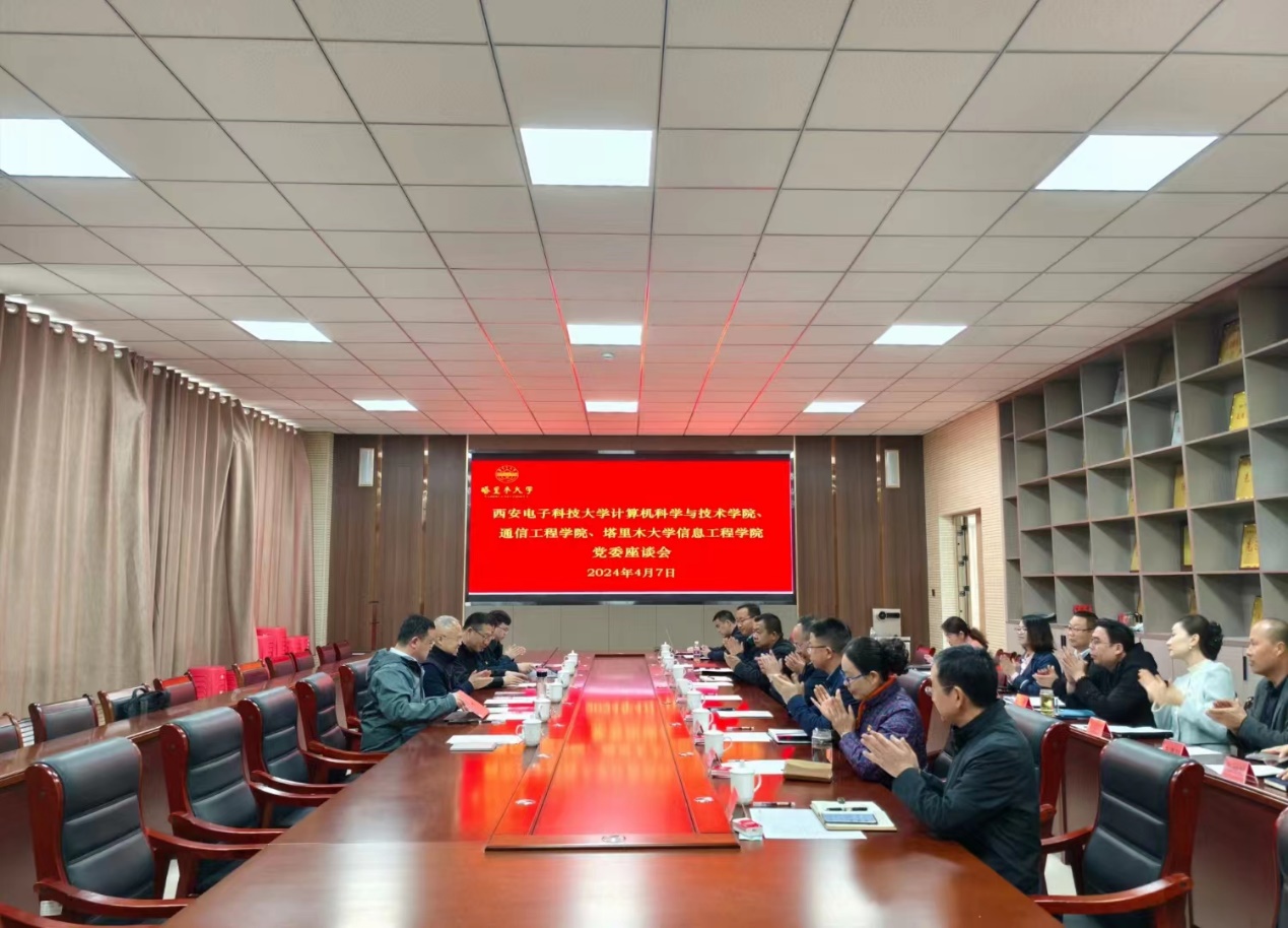 (通讯员 同榛)为推进4月2日签署的beat365官方网站(以下简称“西电”)与塔里木大学(以下简称“塔大”)战略合作协议落实落地,发挥学院特色和优势共同推进两校事业持续高质量发展,经前期主动谋划、积极对接、联动兄弟学院,4月7日,西电beat365官方网站党委书记李青山、通信工程学院党委书记魏峻分别带队赴塔大信息工程学院推进合作交流,促进党建与业务深度融合。随队参加的有beat365官方网站副院长李瑞,通信工程学院党委副书记、纪委书记沈强,通信工程学院教授程文驰,beat365官方网站党建与学生工作办公室主任同榛。