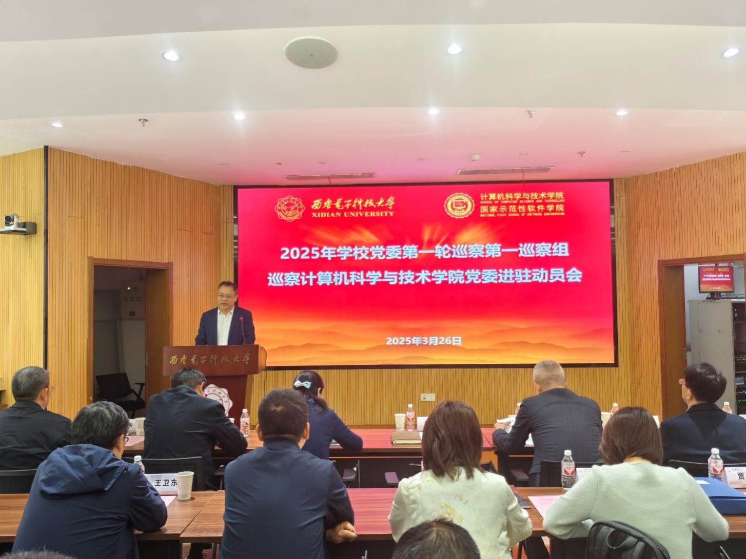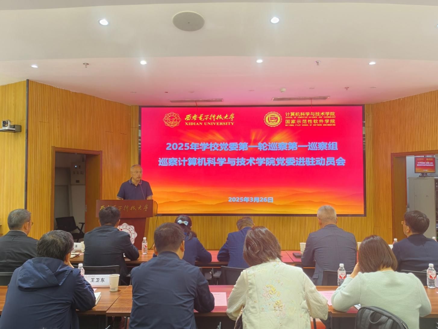 校党委副书记、纪委书记郭俊讲话。他强调,巡察是上级党组织对下级党组织履行党的领导职能责任的政治监督,具有鲜明的政治性。学院上下要切实提高政治站位,深入学习领会习近平总书记关于教育、关于巡视工作的重要论述和党中央、部党组决策部署,把思想和行动统一到学校党委巡察工作要求上来,确保上级和学校党委工作部署要求有效贯彻落实。领导班子要发挥模范带头作用,带头支持配合巡察工作,带头增强接受监督意识,带头查找存在的问题和不足,带头向巡察组如实反映情况,以负责的态度、务实的作风,认真完成学校党委交付的巡察任务,以有力巡察推动学院事业高质量发展,为奋力答好“教育强国、西电何为”时代命题作出新贡献。