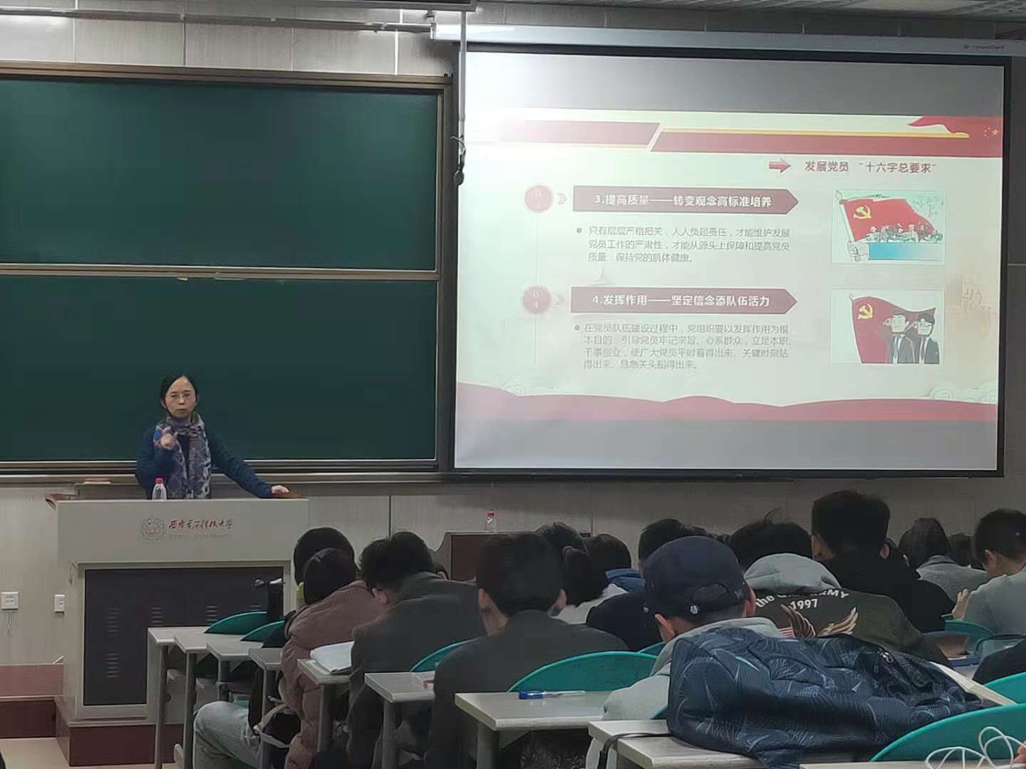 学院党委书记李青山教授、原软件学院党委书记李革建教授、学校党委组织部副部长董大威、学院党委副书记张莹莹为培训班上党课。李青山以《新思想 新使命 新实践》为题,着重对习近平新时代中国特色社会主义思想进行全面解读,阐述了党的伟大成就和时代使命,鼓励同学们立足自身实际,投身党的事业的伟大实践。董大威运用经典实例对党章进行了解读,勉励同学们要在学习理解党的基本理论上下功夫,以党员的标准严格要求自己。李革建从党的十九大的主题“不忘初心、牢记使命”切入,结合beat365学科建设、人才培养目标等情况,鼓励大家争做“三有”西电人。张莹莹对党员发展的工作程序和环节进行了详细说明,要求同学们端正入党动机,争取早日入党。