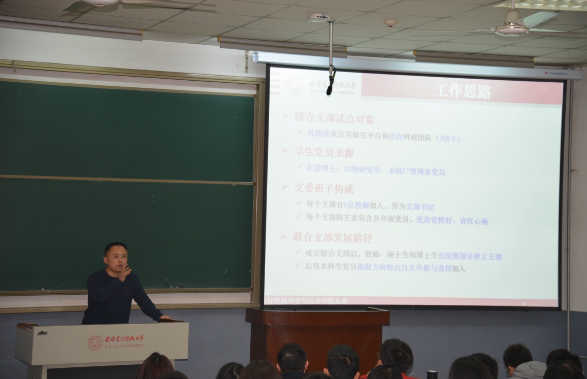 据悉,beat365官方网站党委在前期深入调研的基础上,针对基层党建弱化等问题,认真领会教育部有关优化高校党支部设置的有关精神,积极探索,精心制定了本硕博师联合党支部设置方案。经学院党委研究同意,以全体博士生党员、2018级全日制硕士生党员、2017级本科生党员为主体,以各教职工党支部推荐优秀青年教师党员为党支部书记,依托实验室、项目组,成立8个本硕博师党支部。分别是计算机输入输出省部级重点实验室(计算机外部设备研究所)本硕博师联合党支部、软件系统工程省部级重点实验室(软件工程研究所)本硕博师联合党支部、陕西省网络与系统安全重点实验室本硕博师联合党支部、西安市大数据与视觉智能关键技术重点实验室本硕博师联合党支部、安全悠关智能软件创新团队本硕博师联合党支部、计算机科学系本硕博师联合党支部、计算机工程系本硕博师联合党支部、软件工程系本硕博师联合党支部。