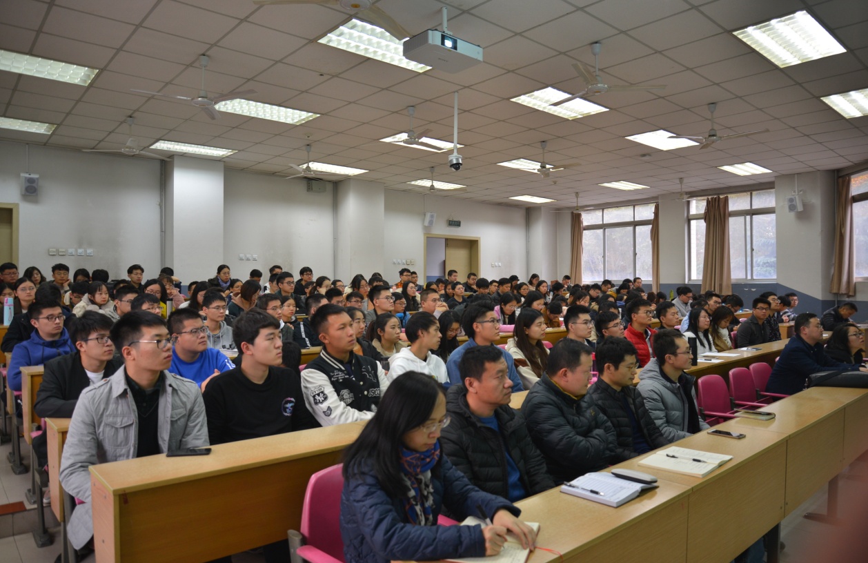 参会教师及学生党员听取报告