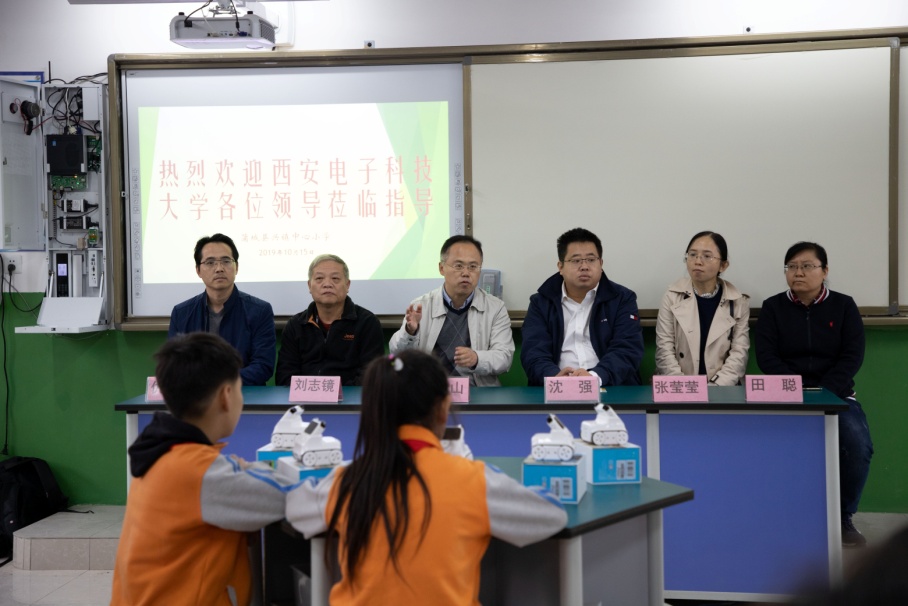 校工会扶贫办主任沈强介绍了青年红色筑梦之旅科创小屋的成立背景,并提出三点期望,一是维护好科创小屋硬件设施,二是利用好小屋先进科技优势,三是发挥好扶智扶志助推脱贫攻坚的支撑作用。“农掌门”科技团队负责人刘志镜教授鼓励小学生们在科创小屋里汲取养分、开拓眼界,并邀请同学们前往西电参观所负责团队实验室,了解计算机科学技术领域的科创成果。兴镇中心小学校长仇林茂在仪式上表示,感谢西电及计科院对小学的大力支持,一定管好用好科创小屋,鼓励同学们利用好宝贵的学习资源,成长成才,将来考上西电这样的好大学。
