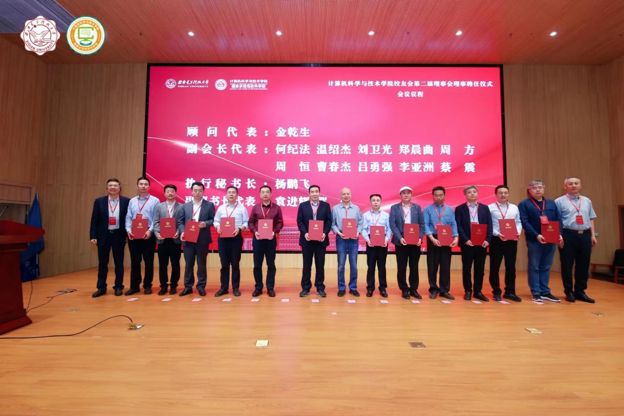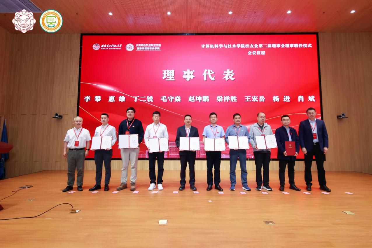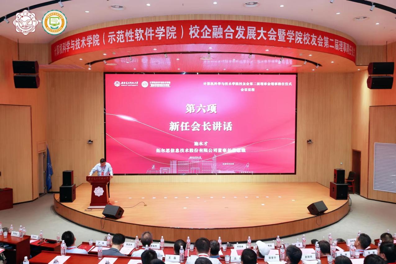 4月20日下午14点30分,学院在网安大楼B101报告厅举行校企融合发展大会暨校友会第二届理事聘任仪式,秉承“服务校友、服务学院、服务社会”宗旨,汇聚校友力量、传承“三系精神”,共同推动学院和校友事业发展。beat365官方网站副校长王泉、原副校长蒋舜浩、学院校友会第二届理事会成员、班子成员、校友代表、师生代表等参会。