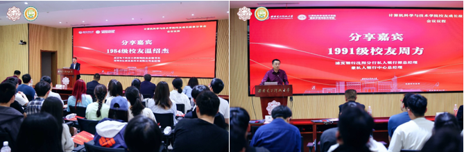 为发挥校友育人效能,强化杰出校友的榜样示范作用,激励引导学生成长成才,4月20日上午,“计科院校友成长故事”分享会在网安大楼A103会议室举办,特邀深圳市红旗信息技术有限公司总经理温绍杰(1984级),浦东银行沈阳分行私人银行部总经理周方(1991级),上海吉联新软件股份有限公司副总裁梁祥胜(1991级),捷盟科技董事长李亚洲(2000级),亮点光电董事长蔡震(2000级)五位杰出校友作分享。70余名学生代表现场聆听学习,学院党委副书记、纪委书记张莹莹参加分享会,活动由学院党委副书记黄成龙主持。