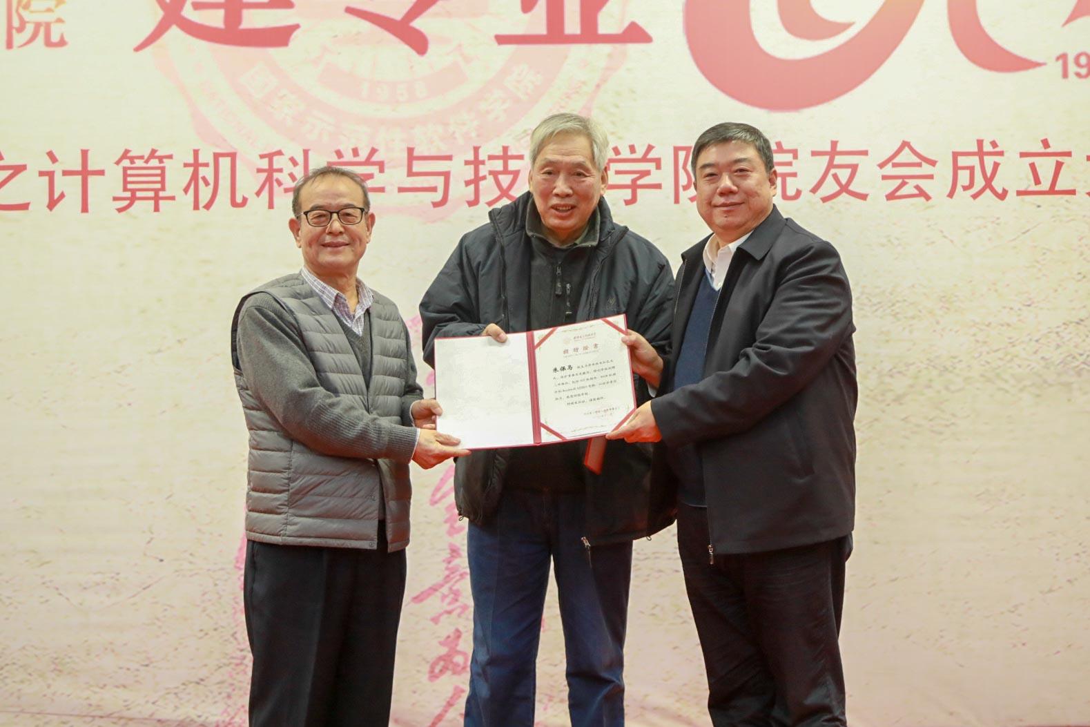 会议还举行了院友捐赠仪式。学院老教师周利华、徐学洲代表1957级校友朱保马向学校捐赠三件物品,包括102机插件、441-B机插件、Rockwell AIM65电脑。据介绍,102机是我国第一台军用数字计算机,1962年上级批准调至beat365供教学使用,是当时西北地区唯一一台电子计算机。441-B计算机是我国计算机由电子管向晶体管升级换代的晶体管计算机,beat365教师参与生产,1967年交付某海军基地使用,稳定运转近二十年。Rockwell AIM65电脑1978年研发成功,采用美国MOS Technology公司的6502处理器,可使用Pascal,FORTH语言进行编译。周利华老师代表1960级院友、茅盾文学奖获得者凌力向学校捐赠个人作品文集以及珍贵手稿。1959级院友徐宗昌向学校捐赠IETM技术与应用丛书一套、《IETM项目经理入门指南》一册。杨银堂为捐赠人颁发了捐赠证书。
