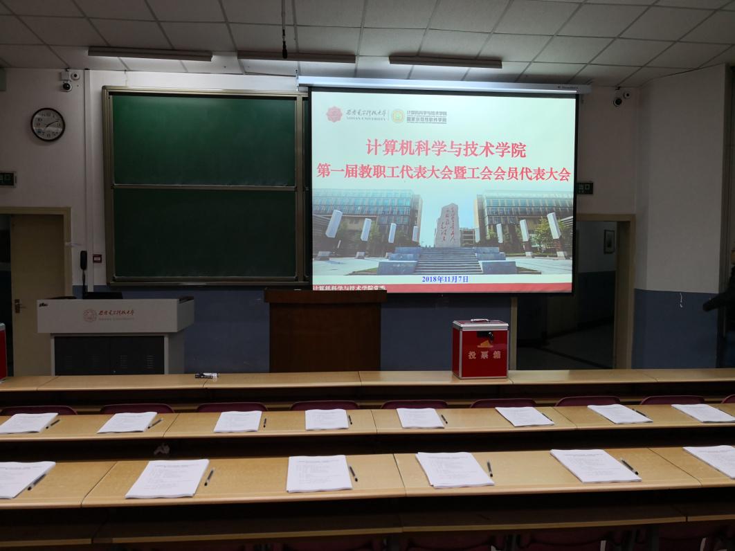 大会进行了计科院第一届工会委员会委员选举。李青山简要介绍了工会委员会委员候选人的酝酿情况,并逐一介绍了候选人简历。与会代表严格按照有关规定和选举程序,选举产生第一届工会委员会9名委员。