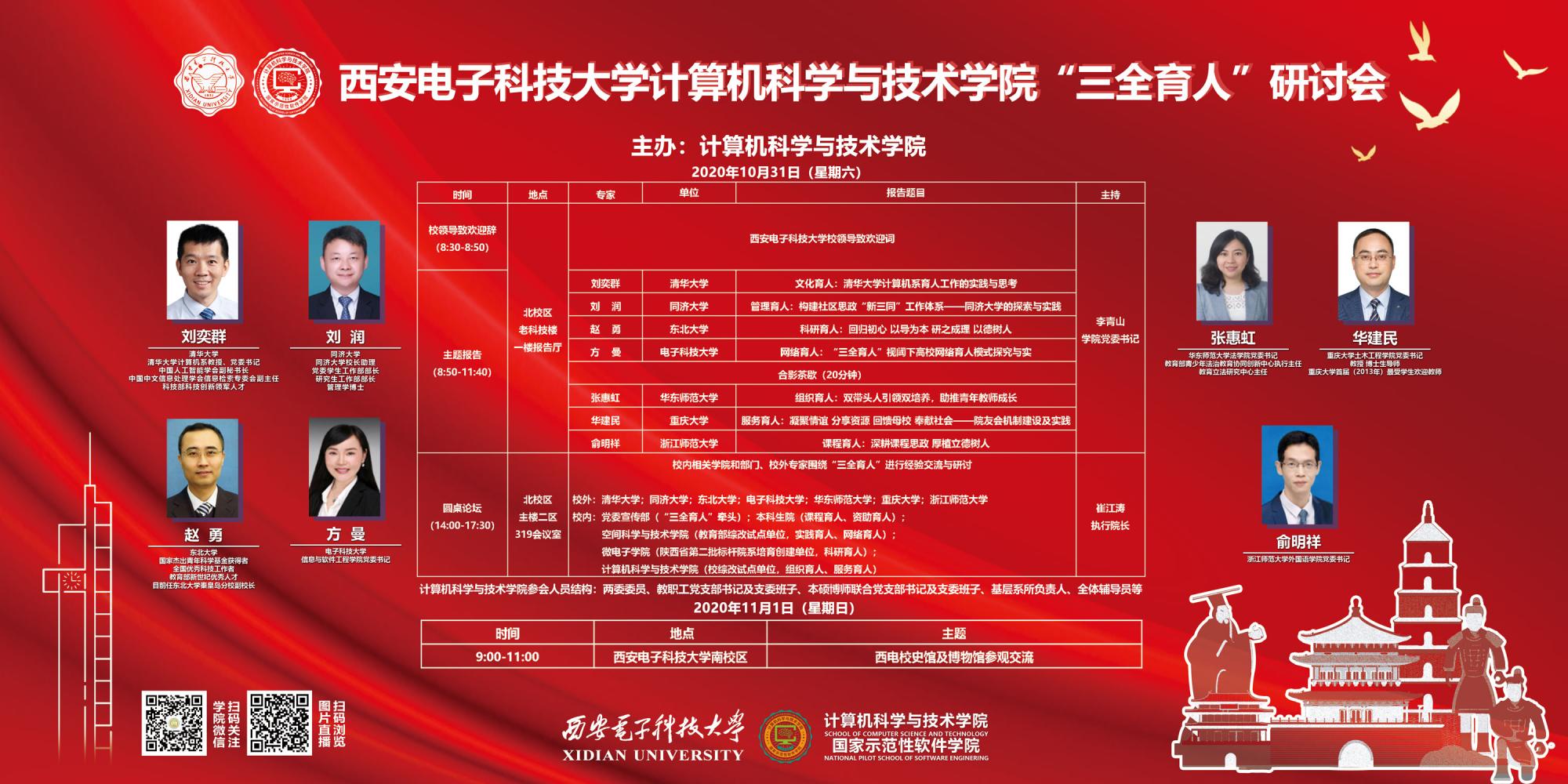 (通讯员 同榛)为认真贯彻全国高校思想政治工作会议和全国教育工作大会精神,研讨高校思想政治教育质量工程,推进学院“三全育人”综合改革试点工作,提升人才培养质量,beat365官方网站作为学校首批“三全育人”综合改革试点学院,于2020年10月30日至11月1日在北校区举办“三全育人研讨会”。此次研讨会由beat365官方网站主办,邀请清华大学、同济大学、东北大学、电子科技大学、华东师范大学、重庆大学、浙江师范大学等7所高校专家,党委宣传部、本科生院、研究生院等校内相关部门和微电子学院、空间科学与技术学院等单位相关负责人,采取主题报告和圆桌论坛的形式,围绕落实落细“十大育人体系”进行深入研讨和广泛交流。学院党政班子、两委委员、教职工支部书记和支委班子、本硕博师联合支部书记和支委班子、辅导员等共计150余人参与了此次研讨会。校党委副书记杨银堂出席研讨会并致欢迎辞。