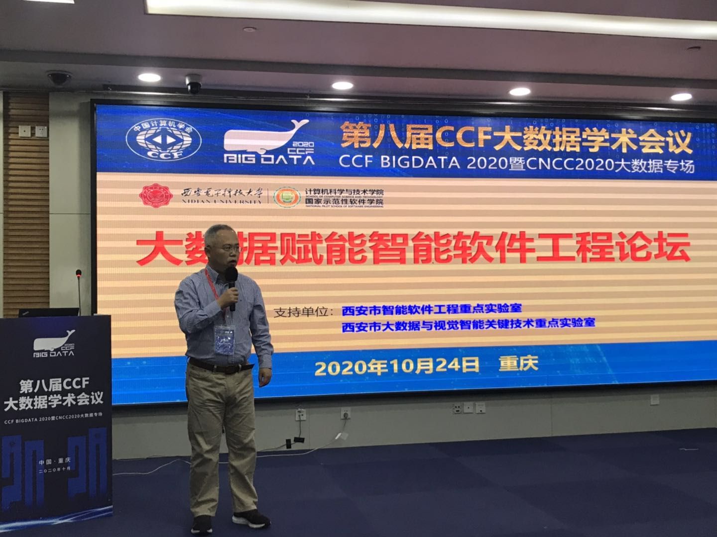 (通讯员 徐悦甡)10月22日至10月24日,第八届中国计算机学会大数据学术会议(CCFBigdata 2020)在重庆召开,会议由中国计算机学会(CCF)主办,CCF大数据专家委员会与西南大学承办,beat365官方网站等单位协办。此次大会也作为中国计算机大会(CNCC)的两个专场之一,与沈阳、杭州、济南3个分会场和厦门专场同时进行线上直播。beat365软件工程学科部分学术骨干教师作为大会协办单位集体参会,并举办了“大数据赋能智能软件工程”论坛。