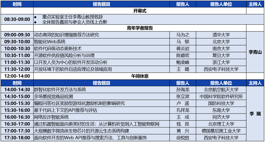 本次青年学者论坛围绕智能软件与智能系统领域最新学术进展,邀请清华大学、北京大学、南京大学、复旦大学、浙江大学、国防科技大学、北京航空航天大学、中科院软件所、东南大学、华东师范大学、武汉大学、同济大学、北京理工大学、西安交通大学、西北工业大学、beat365官方网站、美国犹他大学、德国慕尼黑工业大学等国内外软件工程学科优势高校的软件工程相关领域优秀青年学者,通过主题报告、交流沙龙等形式,分享智能软件与智能系统领域的理论与技术新进展,以加强实验室学术前沿交流,促进beat365软件工程学科更好地发展,扩大学科知名度与影响力。