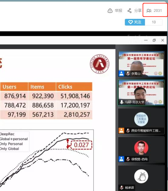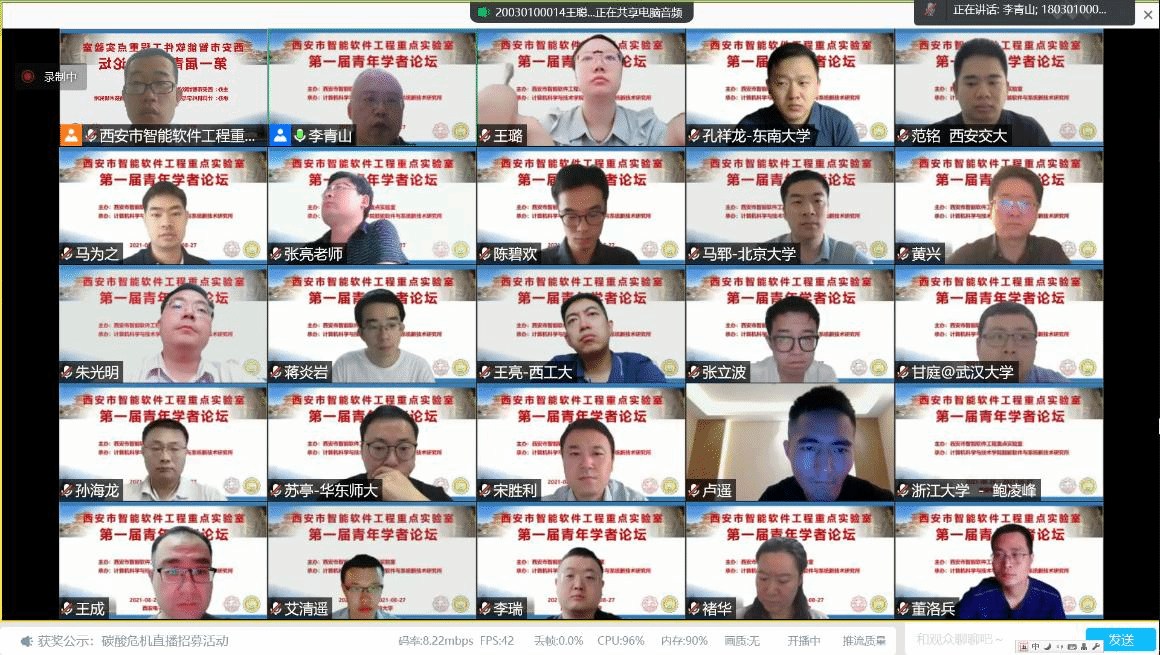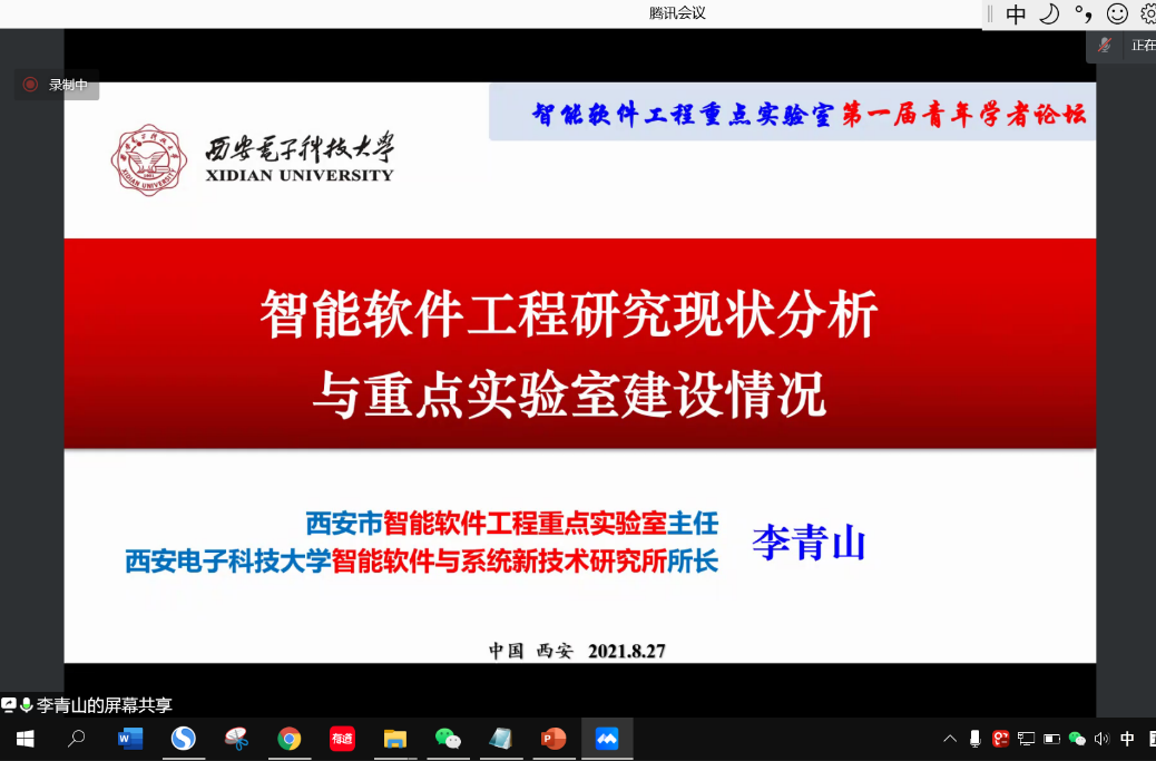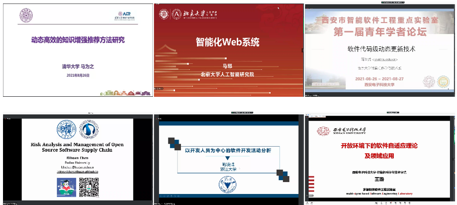(通讯员 徐悦甡)2021年8月26日至8月27日,beat365官方网站西安市智能软件工程重点实验室第一届青年学者论坛成功举办。本次论坛由beat365官方网站智能软件与系统新技术研究所承办,采用腾讯会议与在线直播两种方式线上进行。论坛围绕智能软件与智能系统领域最新学术进展,邀请了清华大学、北京大学、南京大学、复旦大学、浙江大学、国防科技大学、北京航空航天大学、中科院软件所、东南大学、华东师范大学、武汉大学、同济大学、北京理工大学、西安交通大学、西北工业大学、beat365官方网站、美国犹他大学、德国慕尼黑工业大学等国内外软件工程学科优势高校的20位软件工程相关领域优秀青年学者,通过主题报告、交流沙龙等形式,分享了智能软件与智能系统领域的理论与技术新进展,讨论了相关领域的学术前沿,并就beat365软件工程学科的建设与发展进行了交流。论坛吸引了国内外软件工程相关领域师生与从业人员的广泛参与,腾讯会议室同时在线人数超过700人,B站在线直播同时观看人数超过2000人。