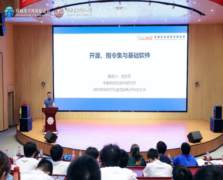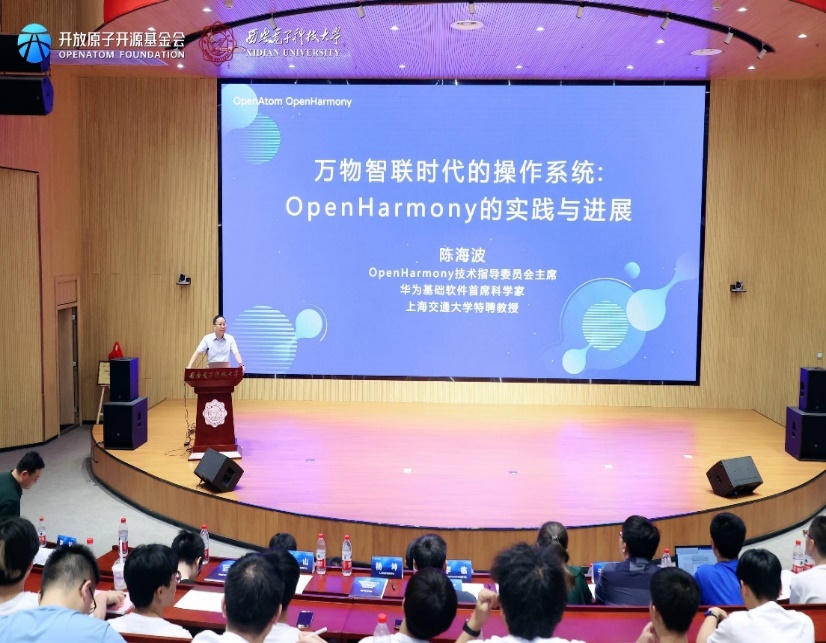 仪式后,陈海波和武延军两位老师代表OpenHarmony TSC专家向beat365官方网站的师生们做了OpenHarmony相关主题的技术报告。第二阶段会议由beat365官方网站副院长李瑞主持。