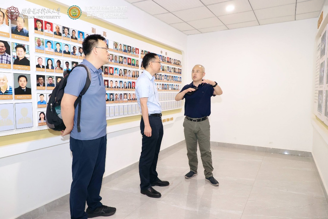 首先,陈海波教授、武延军研究员在李青山教授陪同下,参观了beat365官方网站在新启用的网络安全创新研究大楼中的文化墙建设。李青山教授讲解了学院的发展历程,介绍了学院在专业建设、学科建设、科学研究、党建创新、人才培养等方面取得的成果。