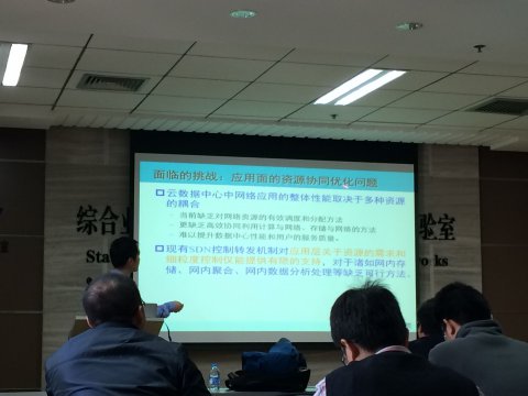 郭老师首先介绍了近年来数据中心新型体系结构设计方法方面的演变和发展趋势,即以服务器为核心的数据中心、以交换机为核心的数据中心、模块化数据中心、随机拓补的数据中心以及无线数据中心。随后,他就数据中心内关联性流量Incast、Shuffle、Multicast的网内聚合效应进行讨论,重点介绍了他在该领域的最新研究成果,即如何通过关联性流量的协同传输最大化这些流量的网内聚合增益,降低数据中心内庞大的东西向流量对网络带宽的消耗。