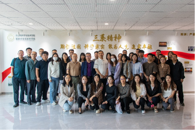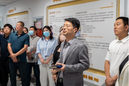 杨鹏飞副教授带领与会嘉宾参观网安大楼学院文化长廊,结合图文并茂的展示内容,全面介绍了学院的变迁发展、办学成果等内容。