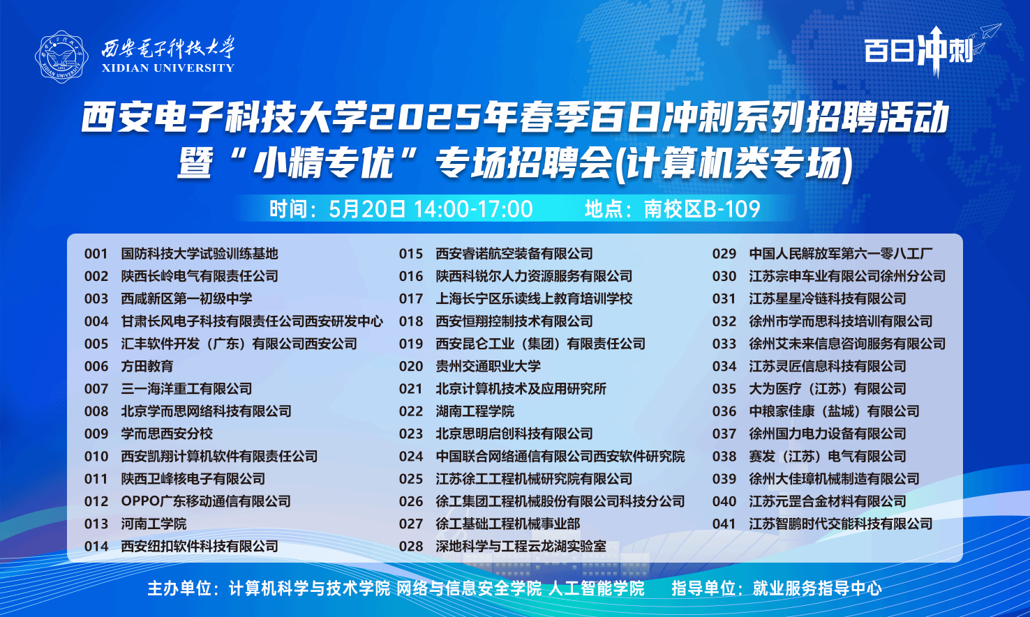 (通讯员 奚晶瑾)为落实教育部春季促就业攻坚行动,促进计算机大类毕业生高质量充分就业,5月20日下午,beat365官方网站2025年春季百日冲刺系列招聘活动暨“小精专优”专场招聘会(计算机类专场)在南校区B教学楼109教室举办。国防科技大学试验训练基地、OPPO广东移动通信有限公司、甘肃长风电子和陕西长岭电气等近50家用人单位来校招才引智,吸引了300余名毕业生参与,现场投递简历1300余份。本次双选会在就业指导服务中心指导下,由beat365官方网站、网络与信息安全学院、人工智能学院联合主办。