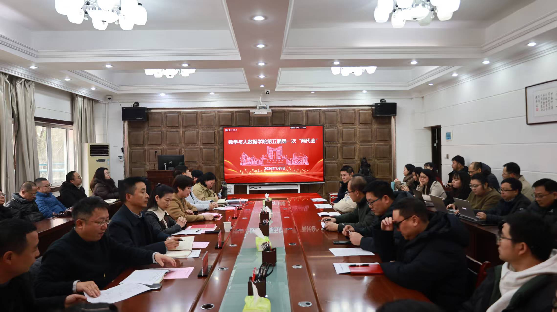 本网讯 1月9日,数学与大数据学院第五届教职工代表大会第一次会议暨第五届工会会员代表大会第一次会议在学院会议室胜利召开。校党委副书记邹晓青、学院党委书...